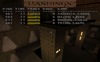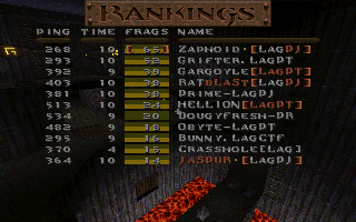 When Q3A comes out, If it proves to have the same excitement and playability as Quakeworld, some of us may seek membership in another clan if we can find one mature and cool enough to suit us. Most of us could not bear to be in a clan full of teenagers with big skill egos and bad ass attitudes to match. Will some of us Lags get together again sometime? Who knows. I won't be a leader anymore, I've had my share of that. But something could happen, We'll wait and see.
